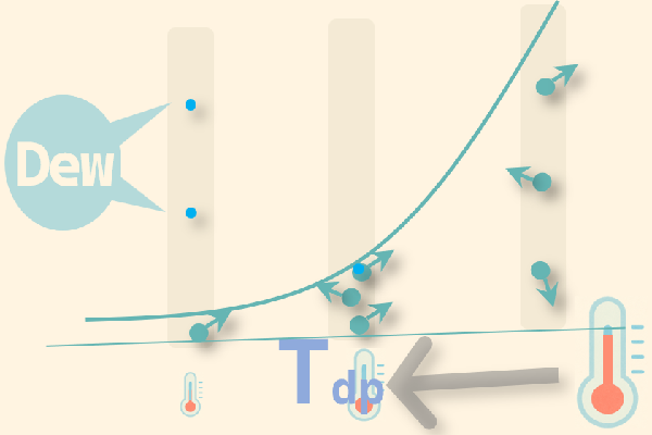 露点温度は、湿り空気が冷却された時に、水蒸気が凝縮して結露が生じる温度を言います。