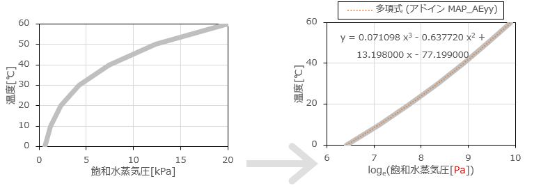 図2 飽和水蒸気圧ー温度の関係の近似式