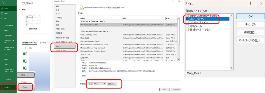 - (必要により”MAP_BE25.xlsx”のファイル名を”MAP_BE25.xlam”に変更)